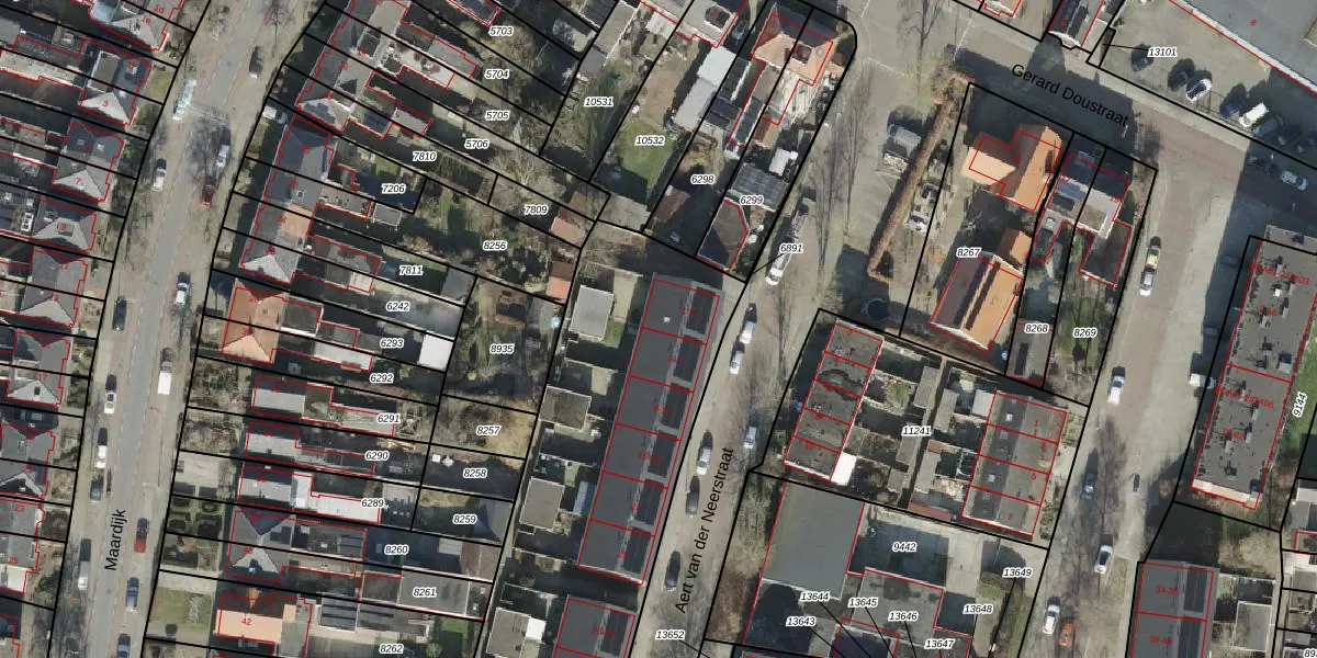 Het perceel waarop Aert van der Neerstraat 3 staat heeft een oppervlakte van 2500 m². Dit is een zeer groot perceel. De perceeloppervlakte wordt geregistreerd door het Kadaster. Gedetailleerde informatie over de maten van dit perceel kunt u vinden in het rapport Kadastrale kaart met maatvoering van Aert van der Neerstraat 3.