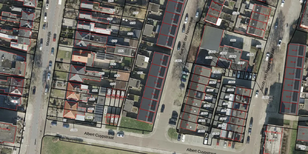 Het perceel waarop Aert van der Neerstraat 31 staat heeft een oppervlakte van 2500 m². Dit is een zeer groot perceel. De perceeloppervlakte wordt geregistreerd door het Kadaster. Gedetailleerde informatie over de maten van dit perceel kunt u vinden in het rapport Kadastrale kaart met maatvoering van Aert van der Neerstraat 31.