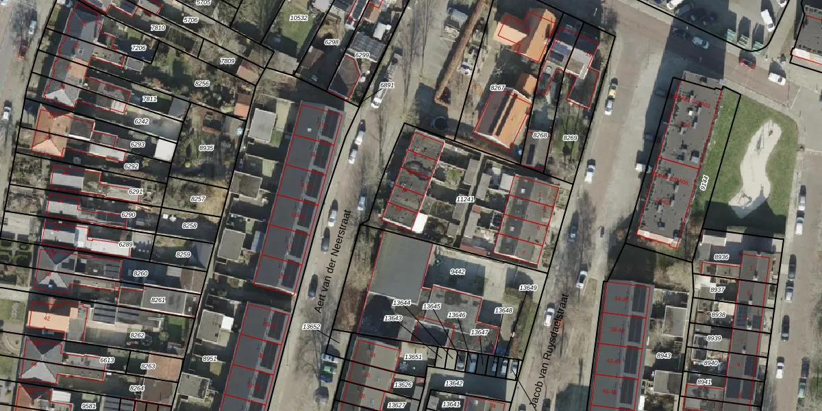 Het perceel waarop Aert van der Neerstraat 8 staat heeft een oppervlakte van 1093 m². Dit is een zeer groot perceel. De perceeloppervlakte wordt geregistreerd door het Kadaster. Gedetailleerde informatie over de maten van dit perceel kunt u vinden in het rapport Kadastrale kaart met maatvoering van Aert van der Neerstraat 8.