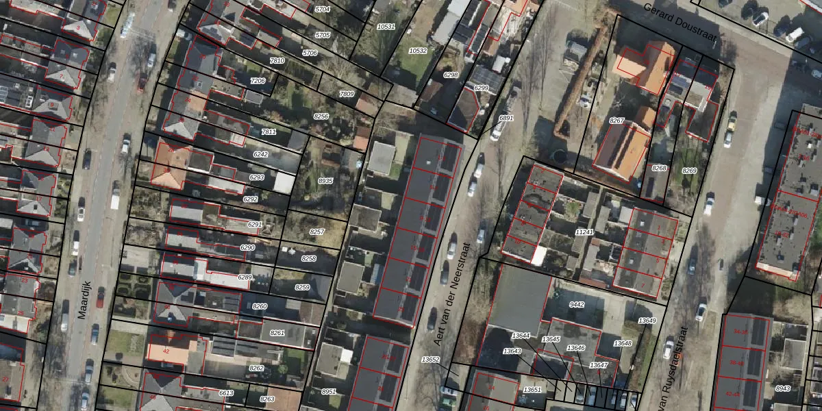 Het perceel waarop Aert van der Neerstraat 9 staat heeft een oppervlakte van 2500 m². Dit is een zeer groot perceel. De perceeloppervlakte wordt geregistreerd door het Kadaster. Gedetailleerde informatie over de maten van dit perceel kunt u vinden in het rapport Kadastrale kaart met maatvoering van Aert van der Neerstraat 9.