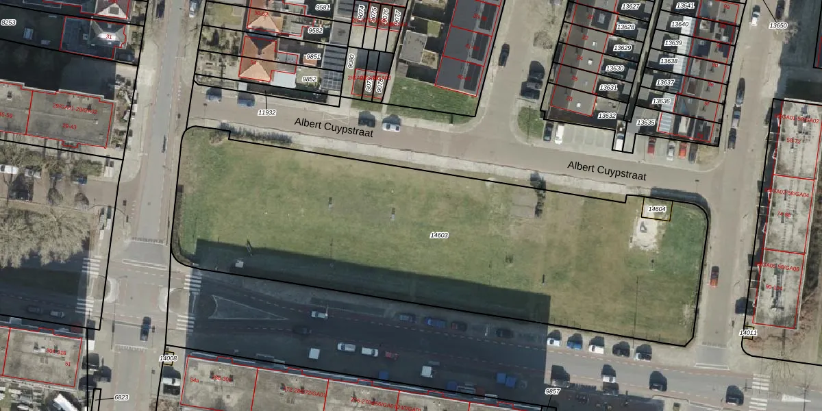 Het perceel waarop Albert Cuypstraat 37 staat heeft een oppervlakte van 4155 m². Dit is een zeer groot perceel. De perceeloppervlakte wordt geregistreerd door het Kadaster. Gedetailleerde informatie over de maten van dit perceel kunt u vinden in het rapport Kadastrale kaart met maatvoering van Albert Cuypstraat 37.