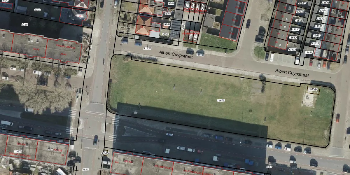 Het perceel waarop Albert Cuypstraat 7 staat heeft een oppervlakte van 4155 m². Dit is een zeer groot perceel. De perceeloppervlakte wordt geregistreerd door het Kadaster. Gedetailleerde informatie over de maten van dit perceel kunt u vinden in het rapport Kadastrale kaart met maatvoering van Albert Cuypstraat 7.