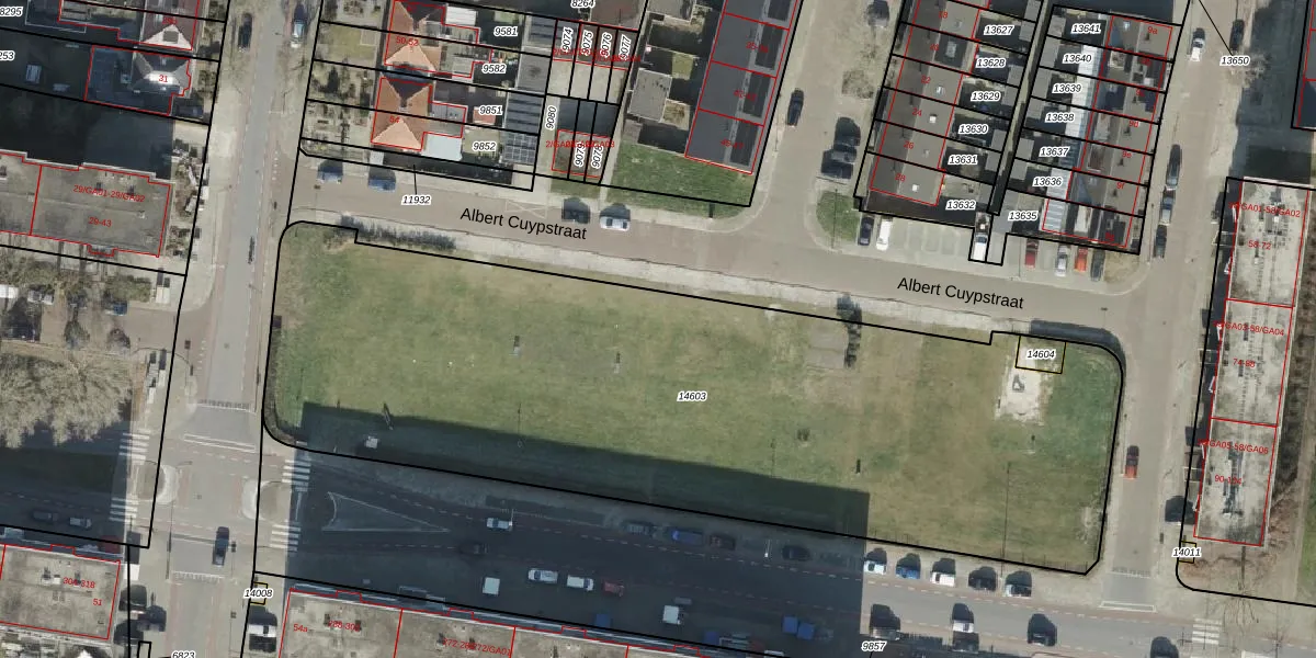 Het perceel waarop Albert Cuypstraat 73 staat heeft een oppervlakte van 4155 m². Dit is een zeer groot perceel. De perceeloppervlakte wordt geregistreerd door het Kadaster. Gedetailleerde informatie over de maten van dit perceel kunt u vinden in het rapport Kadastrale kaart met maatvoering van Albert Cuypstraat 73.