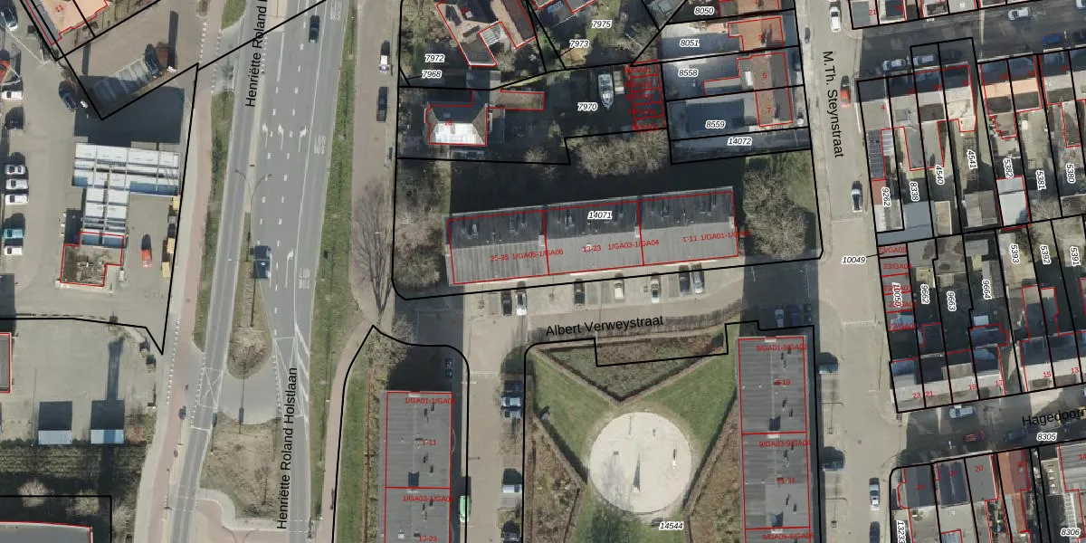 Albert Verweystraat 1-GA05 is gelegen op kadastraal perceel AML01H14071. Deze kadastrale aanduiding is uniek en wordt gebruikt door het Kadaster om eigendomsrechten en andere zakelijke rechten vast te leggen. Het perceel maakt onderdeel uit van de kadastrale gemeente Ambt-Almelo.