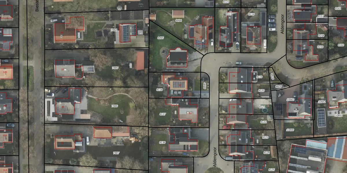 Het perceel waarop Aldengoor 12 staat heeft een oppervlakte van 451 m². Dit is een groot perceel. De perceeloppervlakte wordt geregistreerd door het Kadaster. Gedetailleerde informatie over de maten van dit perceel kunt u vinden in het rapport Kadastrale kaart met maatvoering van Aldengoor 12.