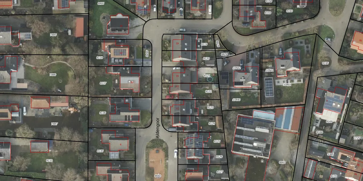 Aldengoor 13 is gelegen op kadastraal perceel AML01B8122. Deze kadastrale aanduiding is uniek en wordt gebruikt door het Kadaster om eigendomsrechten en andere zakelijke rechten vast te leggen. Het perceel maakt onderdeel uit van de kadastrale gemeente Ambt-Almelo.