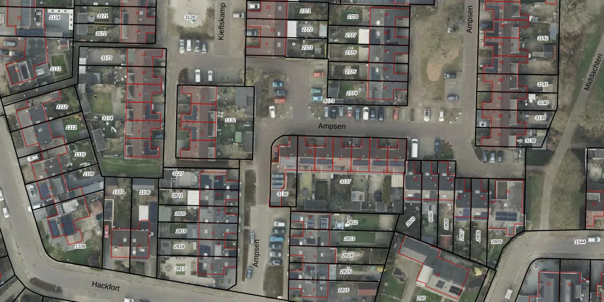 Het perceel waarop Ampsen 13 staat heeft een oppervlakte van 902 m². Dit is een groot perceel. De perceeloppervlakte wordt geregistreerd door het Kadaster. Gedetailleerde informatie over de maten van dit perceel kunt u vinden in het rapport Kadastrale kaart met maatvoering van Ampsen 13.