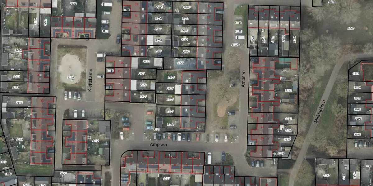 Het perceel waarop Ampsen 20 staat heeft een oppervlakte van 162 m². Dit is een middelgroot perceel. De perceeloppervlakte wordt geregistreerd door het Kadaster. Gedetailleerde informatie over de maten van dit perceel kunt u vinden in het rapport Kadastrale kaart met maatvoering van Ampsen 20.