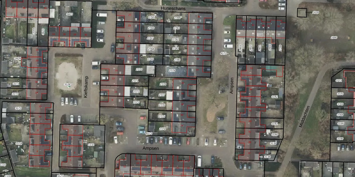 Het perceel waarop Ampsen 22 staat heeft een oppervlakte van 185 m². Dit is een middelgroot perceel. De perceeloppervlakte wordt geregistreerd door het Kadaster. Gedetailleerde informatie over de maten van dit perceel kunt u vinden in het rapport Kadastrale kaart met maatvoering van Ampsen 22.