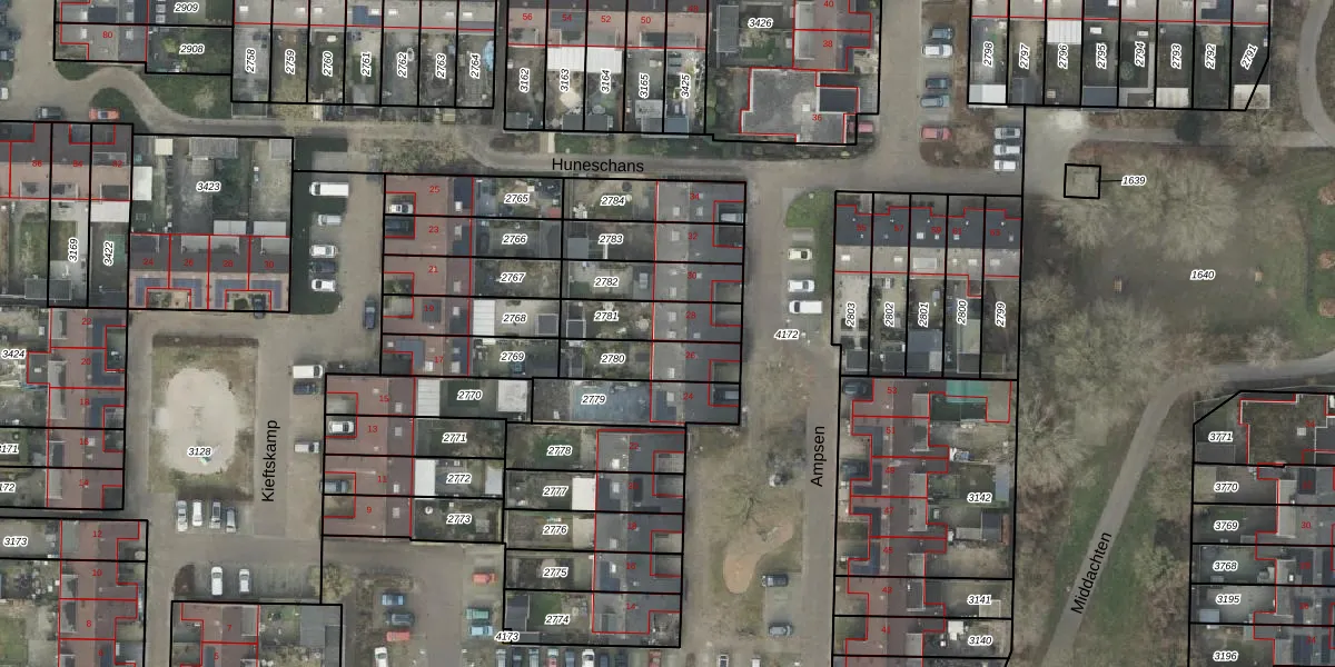 Het perceel waarop Ampsen 28 staat heeft een oppervlakte van 162 m². Dit is een middelgroot perceel. De perceeloppervlakte wordt geregistreerd door het Kadaster. Gedetailleerde informatie over de maten van dit perceel kunt u vinden in het rapport Kadastrale kaart met maatvoering van Ampsen 28.