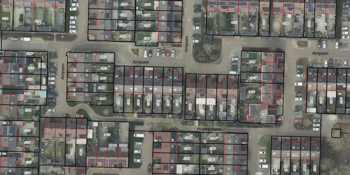 Het perceel waarop Ampsen 58 staat heeft een oppervlakte van 153 m². Dit is een middelgroot perceel. De perceeloppervlakte wordt geregistreerd door het Kadaster. Gedetailleerde informatie over de maten van dit perceel kunt u vinden in het rapport Kadastrale kaart met maatvoering van Ampsen 58.