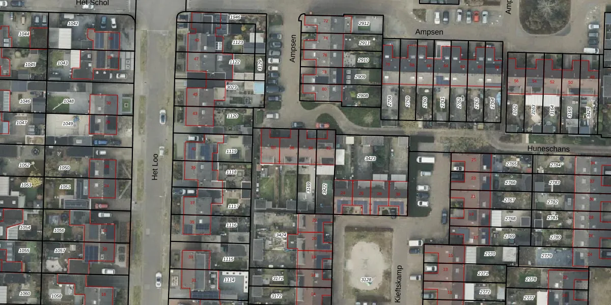 Het perceel waarop Ampsen 84 staat heeft een oppervlakte van 163 m². Dit is een middelgroot perceel. De perceeloppervlakte wordt geregistreerd door het Kadaster. Gedetailleerde informatie over de maten van dit perceel kunt u vinden in het rapport Kadastrale kaart met maatvoering van Ampsen 84.