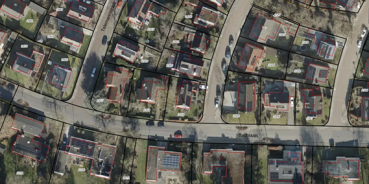 Het perceel waarop Bachlaan 29 staat heeft een oppervlakte van 475 m². Dit is een groot perceel. De perceeloppervlakte wordt geregistreerd door het Kadaster. Gedetailleerde informatie over de maten van dit perceel kunt u vinden in het rapport Kadastrale kaart met maatvoering van Bachlaan 29.