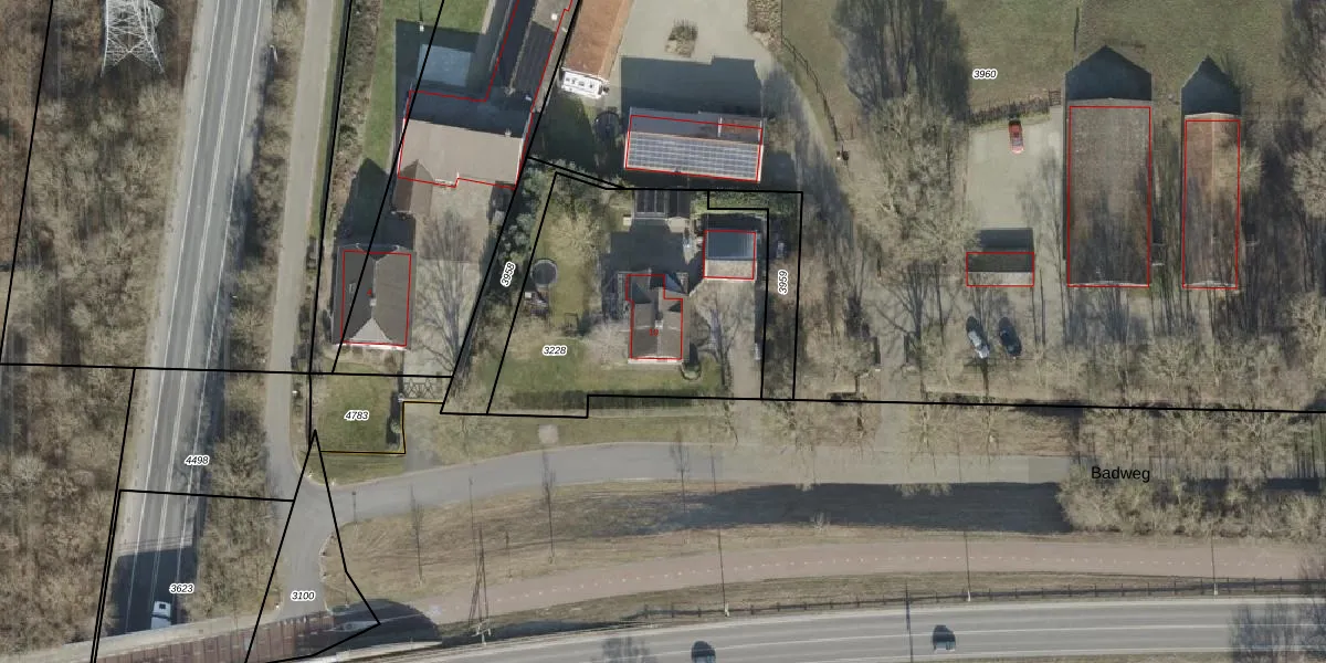 Badweg 10 is gelegen op kadastraal perceel AML01I3228. Deze kadastrale aanduiding is uniek en wordt gebruikt door het Kadaster om eigendomsrechten en andere zakelijke rechten vast te leggen. Het perceel maakt onderdeel uit van de kadastrale gemeente Ambt-Almelo.