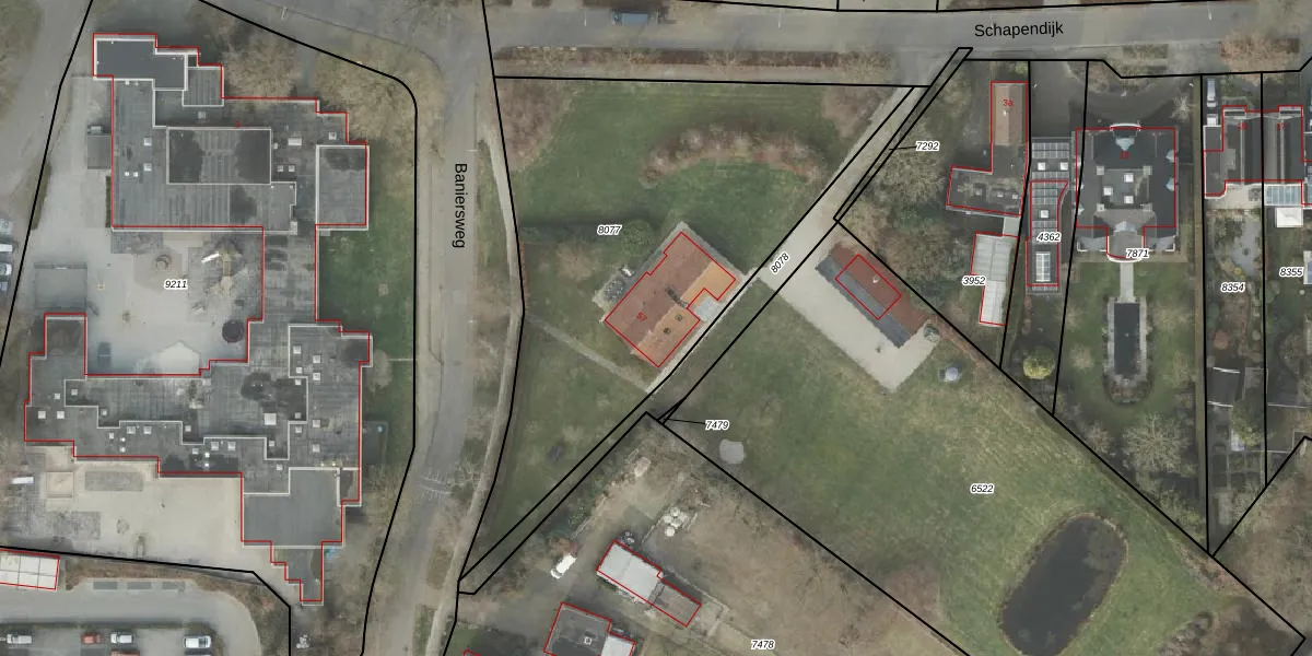 Baniersweg 57 is gelegen op kadastraal perceel AML01B8077. Deze kadastrale aanduiding is uniek en wordt gebruikt door het Kadaster om eigendomsrechten en andere zakelijke rechten vast te leggen. Het perceel maakt onderdeel uit van de kadastrale gemeente Ambt-Almelo.