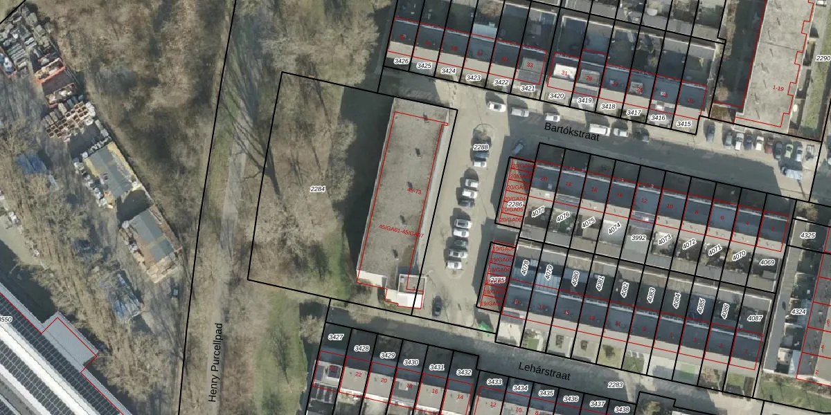 Bartókstraat 45-GA04 is gelegen op kadastraal perceel AML01I2284. Deze kadastrale aanduiding is uniek en wordt gebruikt door het Kadaster om eigendomsrechten en andere zakelijke rechten vast te leggen. Het perceel maakt onderdeel uit van de kadastrale gemeente Ambt-Almelo.