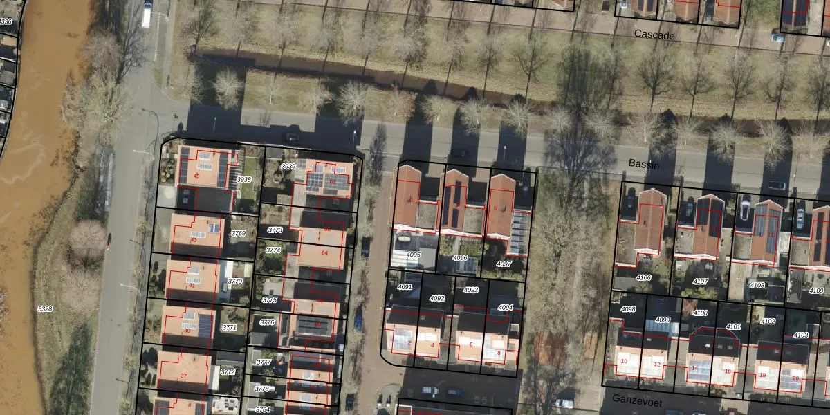 Gebruik de zoekbalk of klik op een perceel voor informatie over de adressen binnen dit perceel.