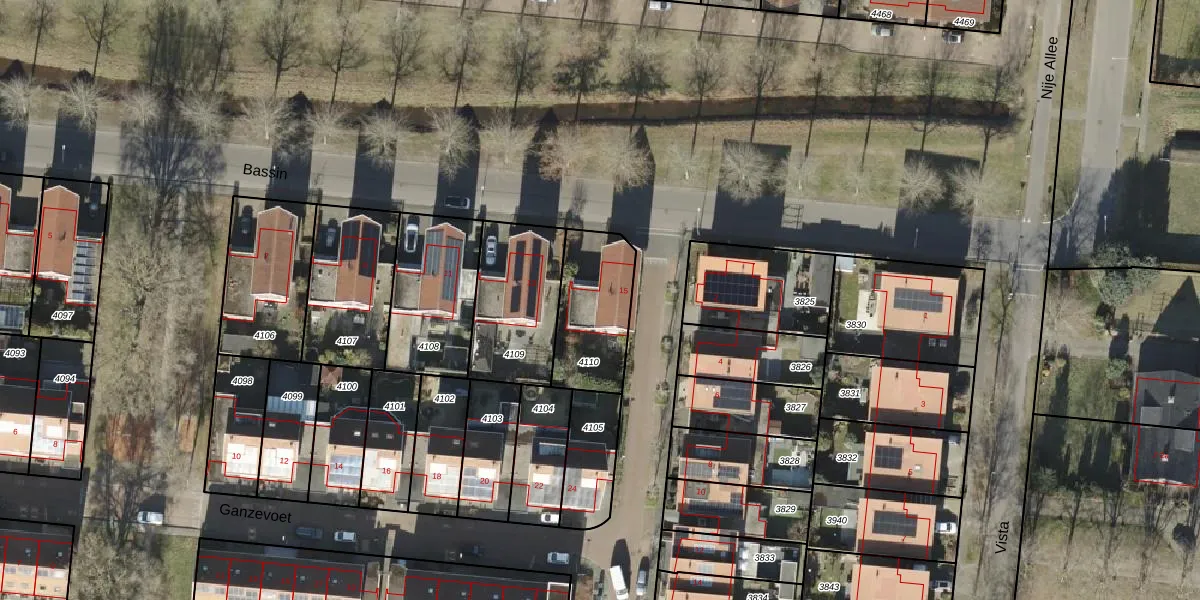 Het perceel waarop Bassin 15 staat heeft een oppervlakte van 313 m². Dit is een groot perceel. De perceeloppervlakte wordt geregistreerd door het Kadaster. Gedetailleerde informatie over de maten van dit perceel kunt u vinden in het rapport Kadastrale kaart met maatvoering van Bassin 15.