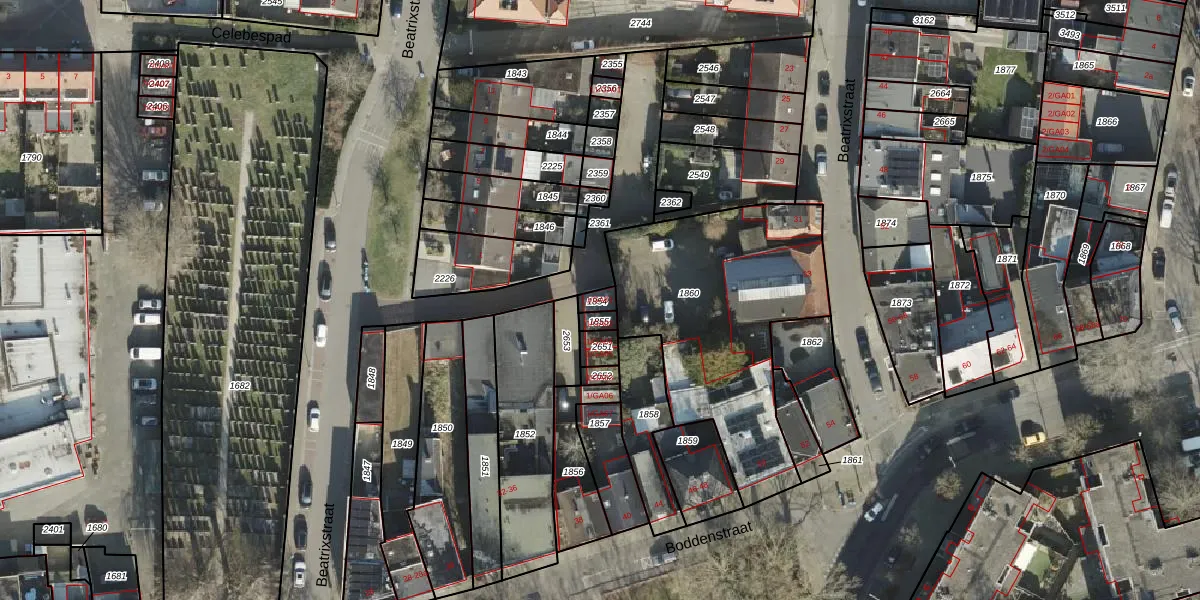 Het perceel waarop Beatrixstraat 1-GA01 staat heeft een oppervlakte van 23 m². Dit is een klein perceel. De perceeloppervlakte wordt geregistreerd door het Kadaster. Gedetailleerde informatie over de maten van dit perceel kunt u vinden in het rapport Kadastrale kaart met maatvoering van Beatrixstraat 1-GA01.