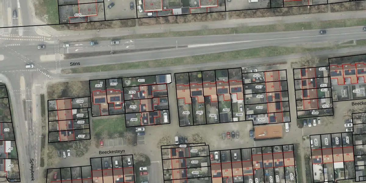 Gebruik de zoekbalk of klik op een perceel voor informatie over de adressen binnen dit perceel.