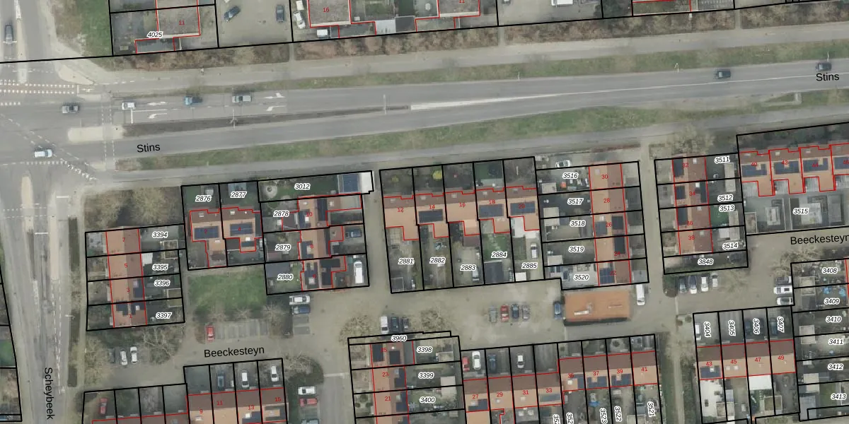 Gebruik de zoekbalk of klik op een perceel voor informatie over de adressen binnen dit perceel.