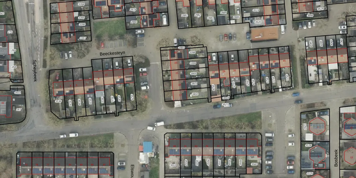Gebruik de zoekbalk of klik op een perceel voor informatie over de adressen binnen dit perceel.