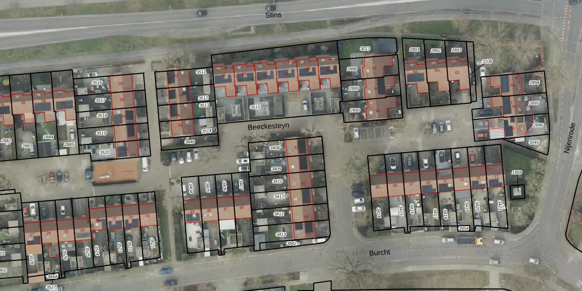 Gebruik de zoekbalk of klik op een perceel voor informatie over de adressen binnen dit perceel.