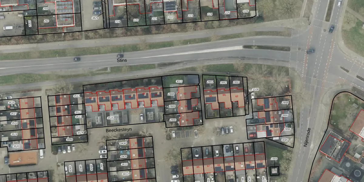 Gebruik de zoekbalk of klik op een perceel voor informatie over de adressen binnen dit perceel.