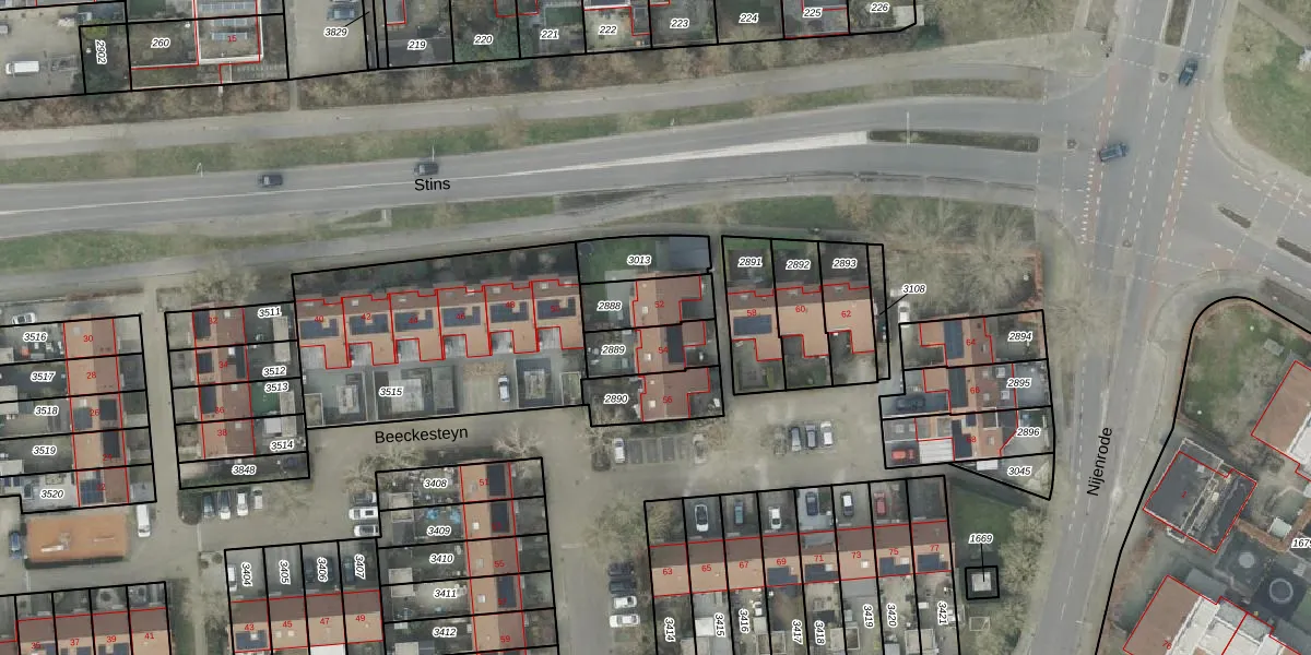 Gebruik de zoekbalk of klik op een perceel voor informatie over de adressen binnen dit perceel.