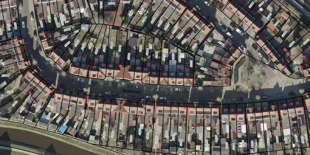 Het perceel waarop Beekstraat 24 staat heeft een oppervlakte van 175 m². Dit is een middelgroot perceel. De perceeloppervlakte wordt geregistreerd door het Kadaster. Gedetailleerde informatie over de maten van dit perceel kunt u vinden in het rapport Kadastrale kaart met maatvoering van Beekstraat 24.