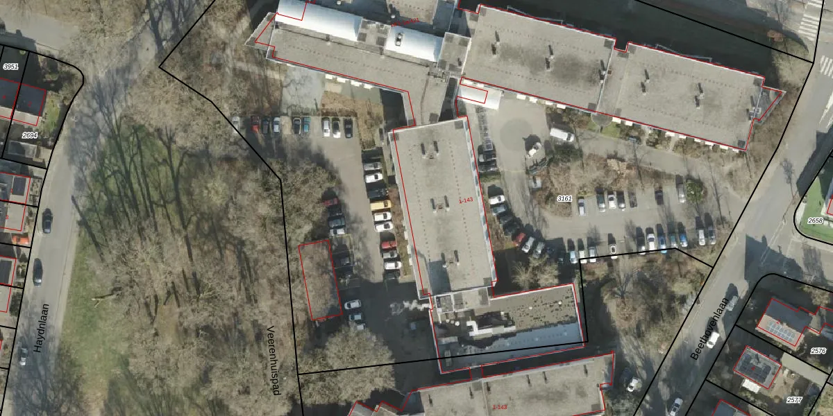 Het perceel waarop Beethovenlaan 1-a-130 staat heeft een oppervlakte van 1,1 ha. Dit is een zeer groot perceel. De perceeloppervlakte wordt geregistreerd door het Kadaster. Gedetailleerde informatie over de maten van dit perceel kunt u vinden in het rapport Kadastrale kaart met maatvoering van Beethovenlaan 1-a-130.