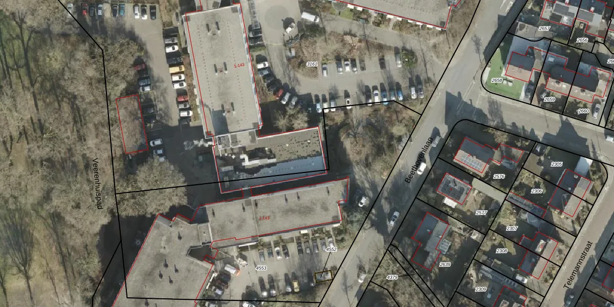Het perceel waarop Beethovenlaan 3 staat heeft een oppervlakte van 1,1 ha. Dit is een zeer groot perceel. De perceeloppervlakte wordt geregistreerd door het Kadaster. Gedetailleerde informatie over de maten van dit perceel kunt u vinden in het rapport Kadastrale kaart met maatvoering van Beethovenlaan 3.