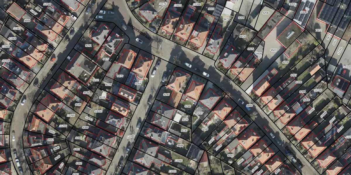 Begoniastraat 9 is gelegen op kadastraal perceel AML02B9245. Deze kadastrale aanduiding is uniek en wordt gebruikt door het Kadaster om eigendomsrechten en andere zakelijke rechten vast te leggen. Het perceel maakt onderdeel uit van de kadastrale gemeente Stad-Almelo.