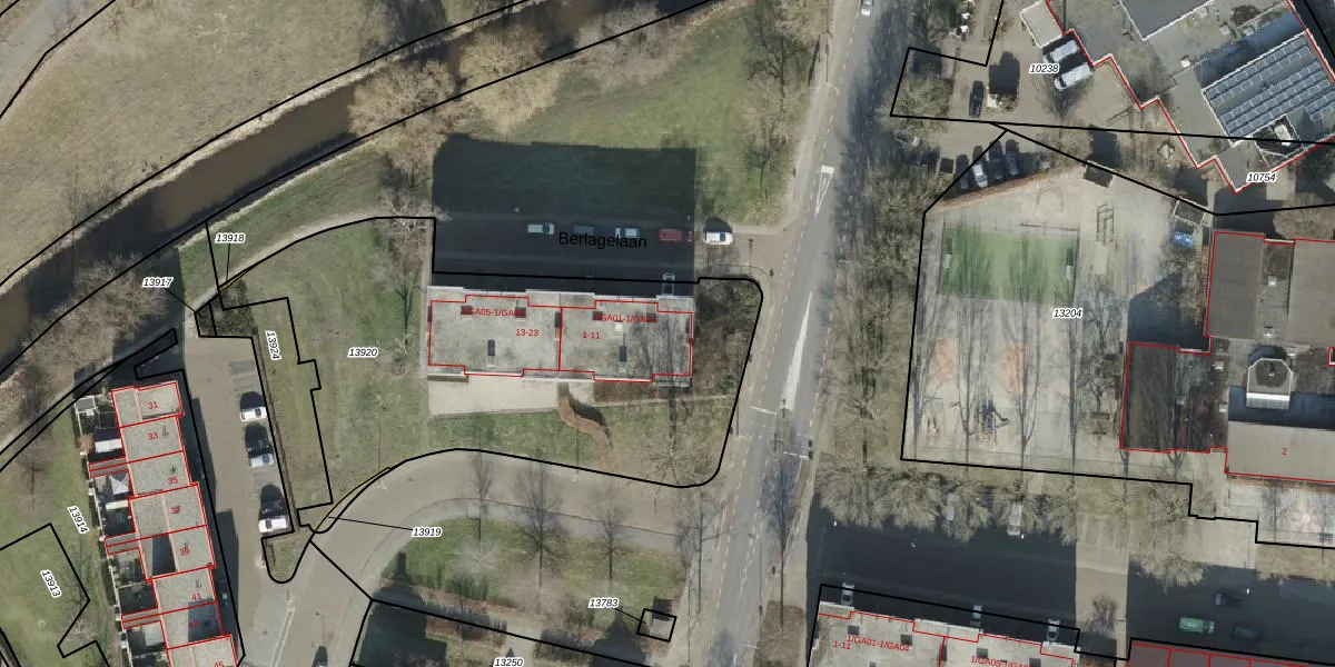 Berlagelaan 1 is gelegen op kadastraal perceel AML01H13920. Deze kadastrale aanduiding is uniek en wordt gebruikt door het Kadaster om eigendomsrechten en andere zakelijke rechten vast te leggen. Het perceel maakt onderdeel uit van de kadastrale gemeente Ambt-Almelo.