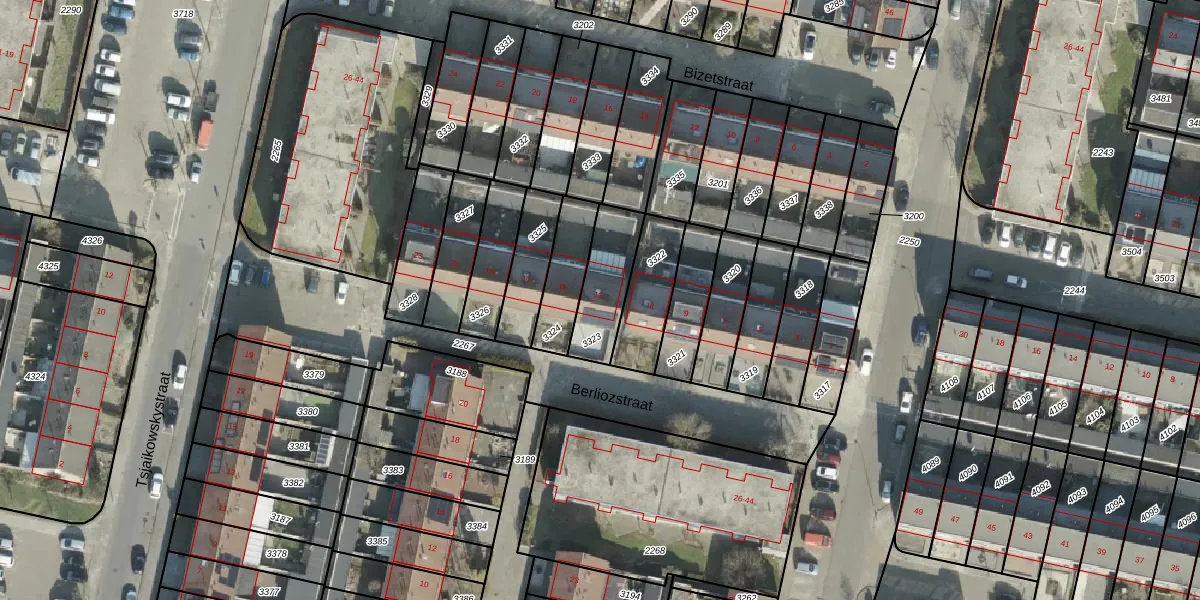 Gebruik de zoekbalk of klik op een perceel voor informatie over de adressen binnen dit perceel.