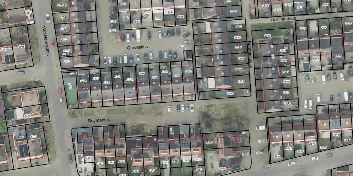 Gebruik de zoekbalk of klik op een perceel voor informatie over de adressen binnen dit perceel.