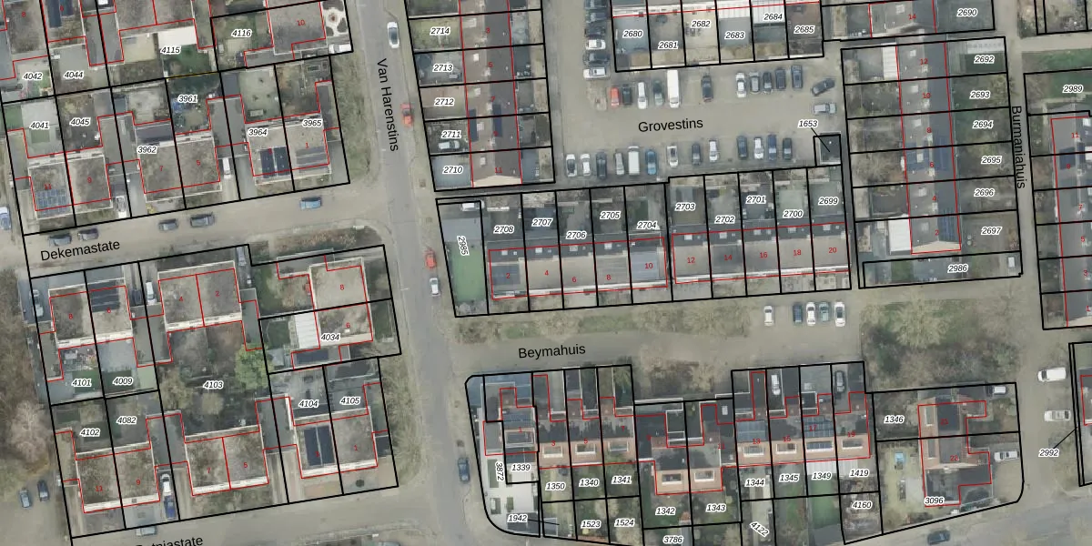 Gebruik de zoekbalk of klik op een perceel voor informatie over de adressen binnen dit perceel.
