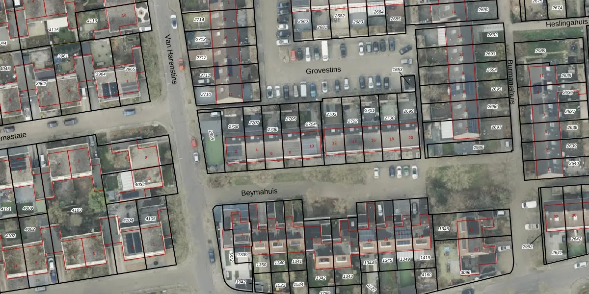 Gebruik de zoekbalk of klik op een perceel voor informatie over de adressen binnen dit perceel.