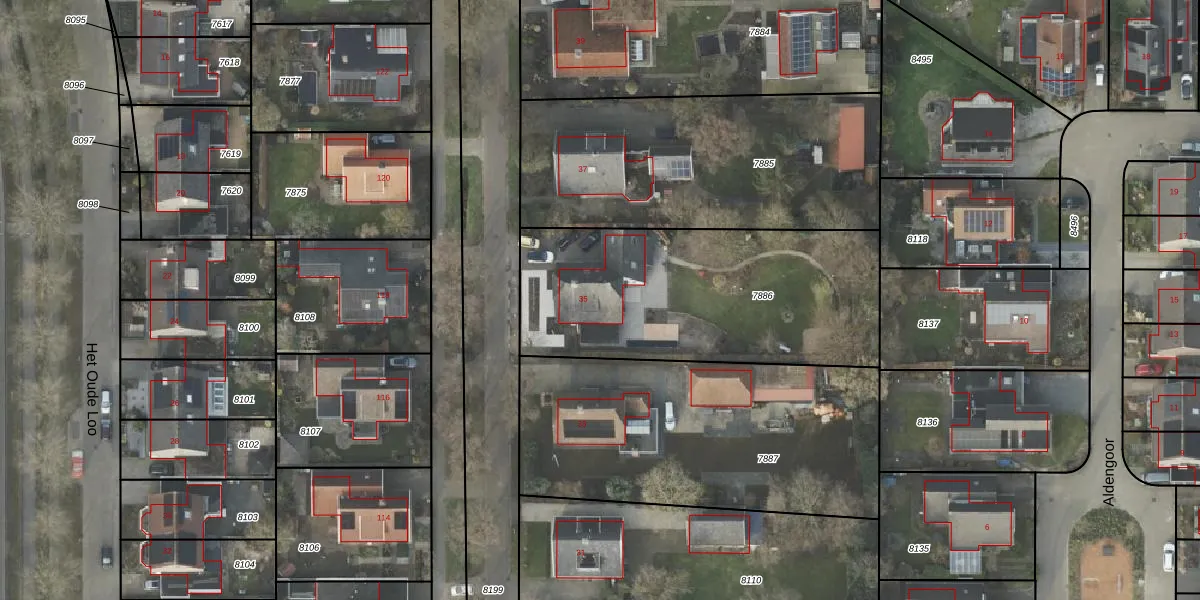 Gebruik de zoekbalk of klik op een perceel voor informatie over de adressen binnen dit perceel.