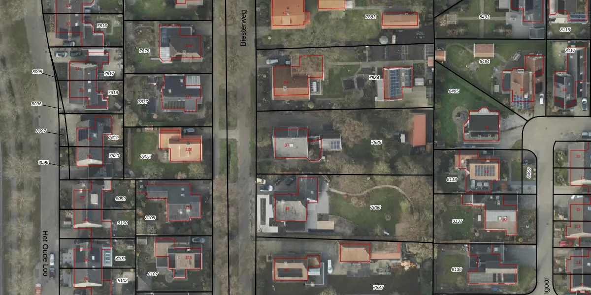 Biesterweg 37 is gelegen op kadastraal perceel AML01B7885. Deze kadastrale aanduiding is uniek en wordt gebruikt door het Kadaster om eigendomsrechten en andere zakelijke rechten vast te leggen. Het perceel maakt onderdeel uit van de kadastrale gemeente Ambt-Almelo.