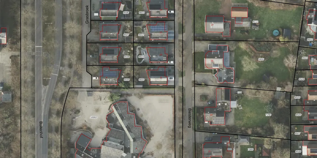 Gebruik de zoekbalk of klik op een perceel voor informatie over de adressen binnen dit perceel.