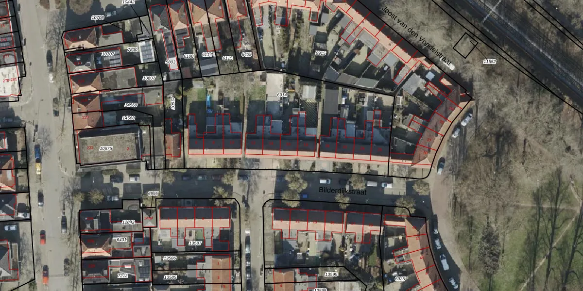 Het perceel waarop Bilderdijkstraat 16 staat heeft een oppervlakte van 2262 m². Dit is een zeer groot perceel. De perceeloppervlakte wordt geregistreerd door het Kadaster. Gedetailleerde informatie over de maten van dit perceel kunt u vinden in het rapport Kadastrale kaart met maatvoering van Bilderdijkstraat 16.