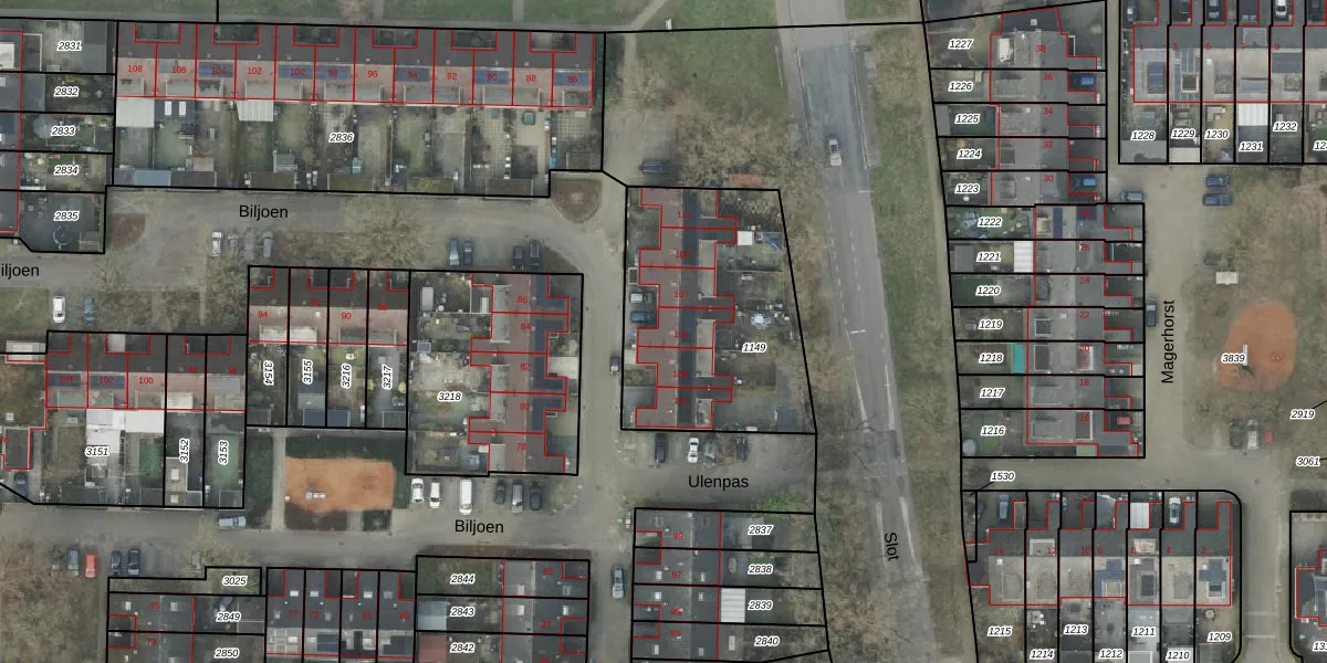 Het perceel waarop Biljoen 105 staat heeft een oppervlakte van 959 m². Dit is een groot perceel. De perceeloppervlakte wordt geregistreerd door het Kadaster. Gedetailleerde informatie over de maten van dit perceel kunt u vinden in het rapport Kadastrale kaart met maatvoering van Biljoen 105.