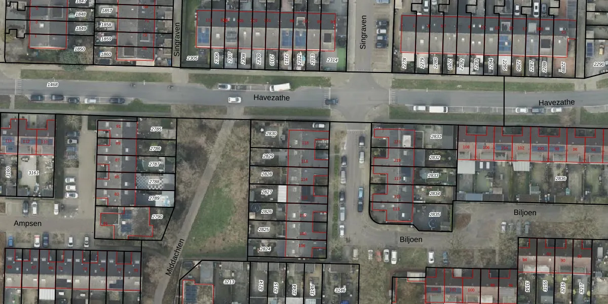 Gebruik de zoekbalk of klik op een perceel voor informatie over de adressen binnen dit perceel.