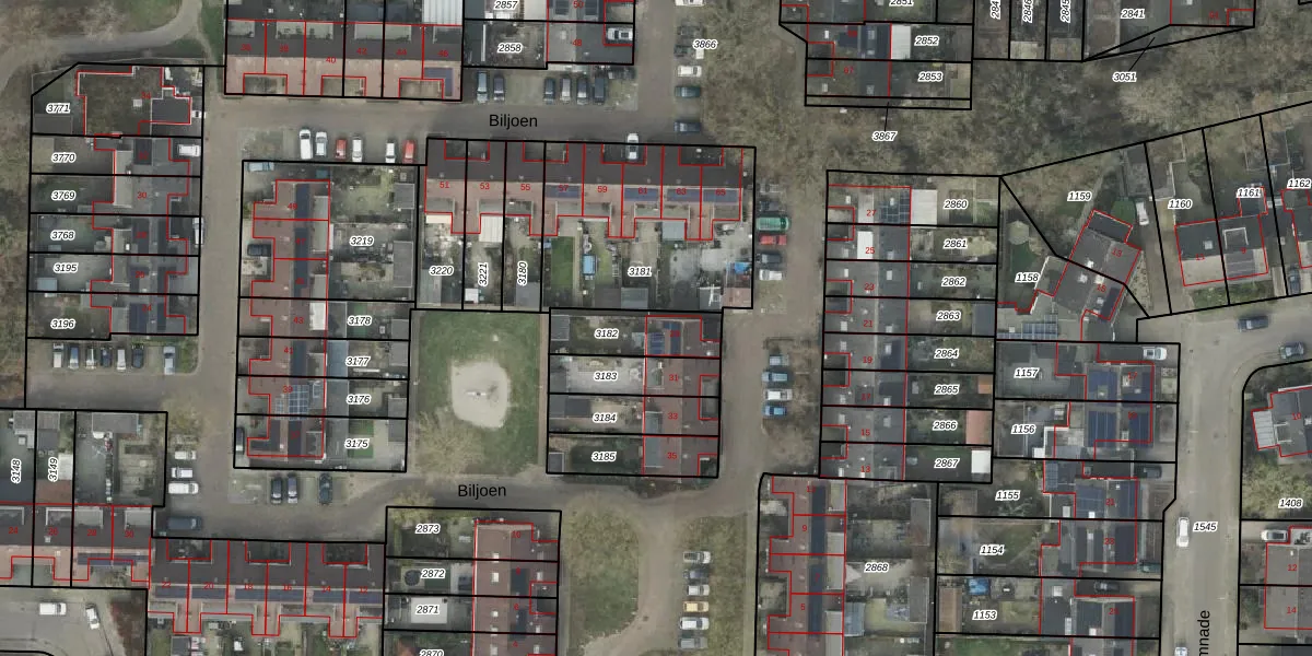 Het perceel waarop Biljoen 29 staat heeft een oppervlakte van 180 m². Dit is een middelgroot perceel. De perceeloppervlakte wordt geregistreerd door het Kadaster. Gedetailleerde informatie over de maten van dit perceel kunt u vinden in het rapport Kadastrale kaart met maatvoering van Biljoen 29.
