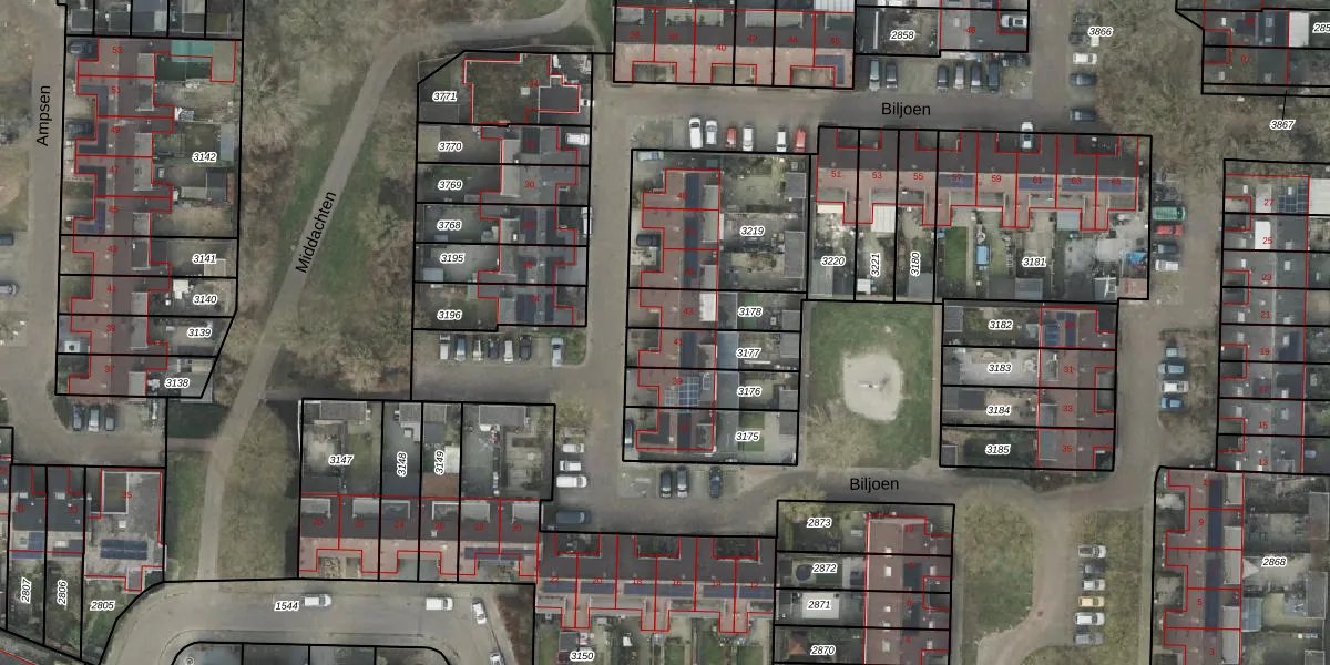 Het perceel waarop Biljoen 41 staat heeft een oppervlakte van 156 m². Dit is een middelgroot perceel. De perceeloppervlakte wordt geregistreerd door het Kadaster. Gedetailleerde informatie over de maten van dit perceel kunt u vinden in het rapport Kadastrale kaart met maatvoering van Biljoen 41.