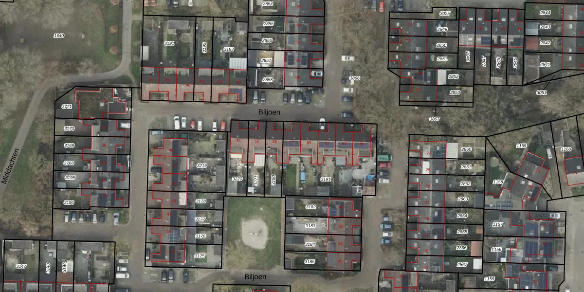 Het perceel waarop Biljoen 57 staat heeft een oppervlakte van 814 m². Dit is een groot perceel. De perceeloppervlakte wordt geregistreerd door het Kadaster. Gedetailleerde informatie over de maten van dit perceel kunt u vinden in het rapport Kadastrale kaart met maatvoering van Biljoen 57.