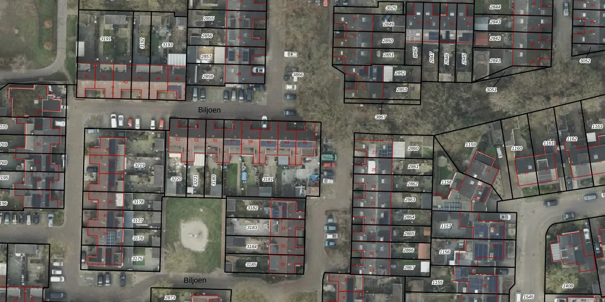 Het perceel waarop Biljoen 65 staat heeft een oppervlakte van 814 m². Dit is een groot perceel. De perceeloppervlakte wordt geregistreerd door het Kadaster. Gedetailleerde informatie over de maten van dit perceel kunt u vinden in het rapport Kadastrale kaart met maatvoering van Biljoen 65.
