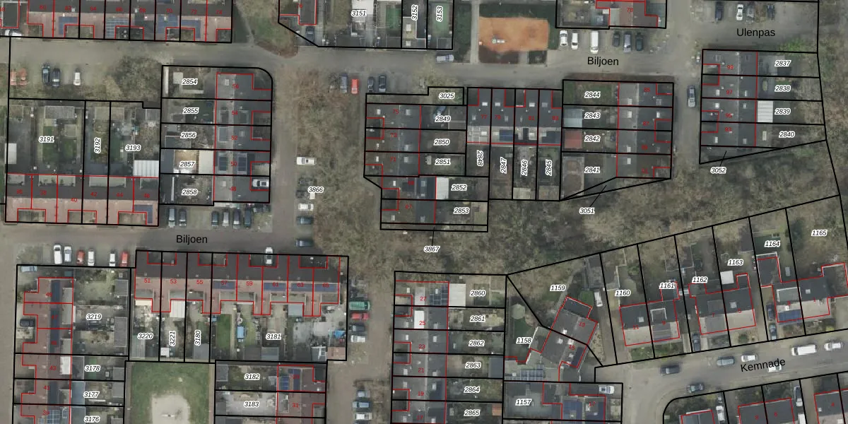 Biljoen 67 is gelegen op kadastraal perceel AML01M2853. Deze kadastrale aanduiding is uniek en wordt gebruikt door het Kadaster om eigendomsrechten en andere zakelijke rechten vast te leggen. Het perceel maakt onderdeel uit van de kadastrale gemeente Ambt-Almelo.