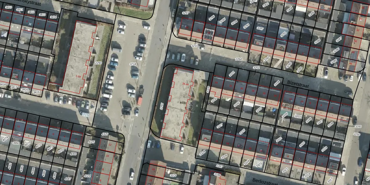 Bizetstraat 32 is gelegen op kadastraal perceel AML01I2265. Deze kadastrale aanduiding is uniek en wordt gebruikt door het Kadaster om eigendomsrechten en andere zakelijke rechten vast te leggen. Het perceel maakt onderdeel uit van de kadastrale gemeente Ambt-Almelo.